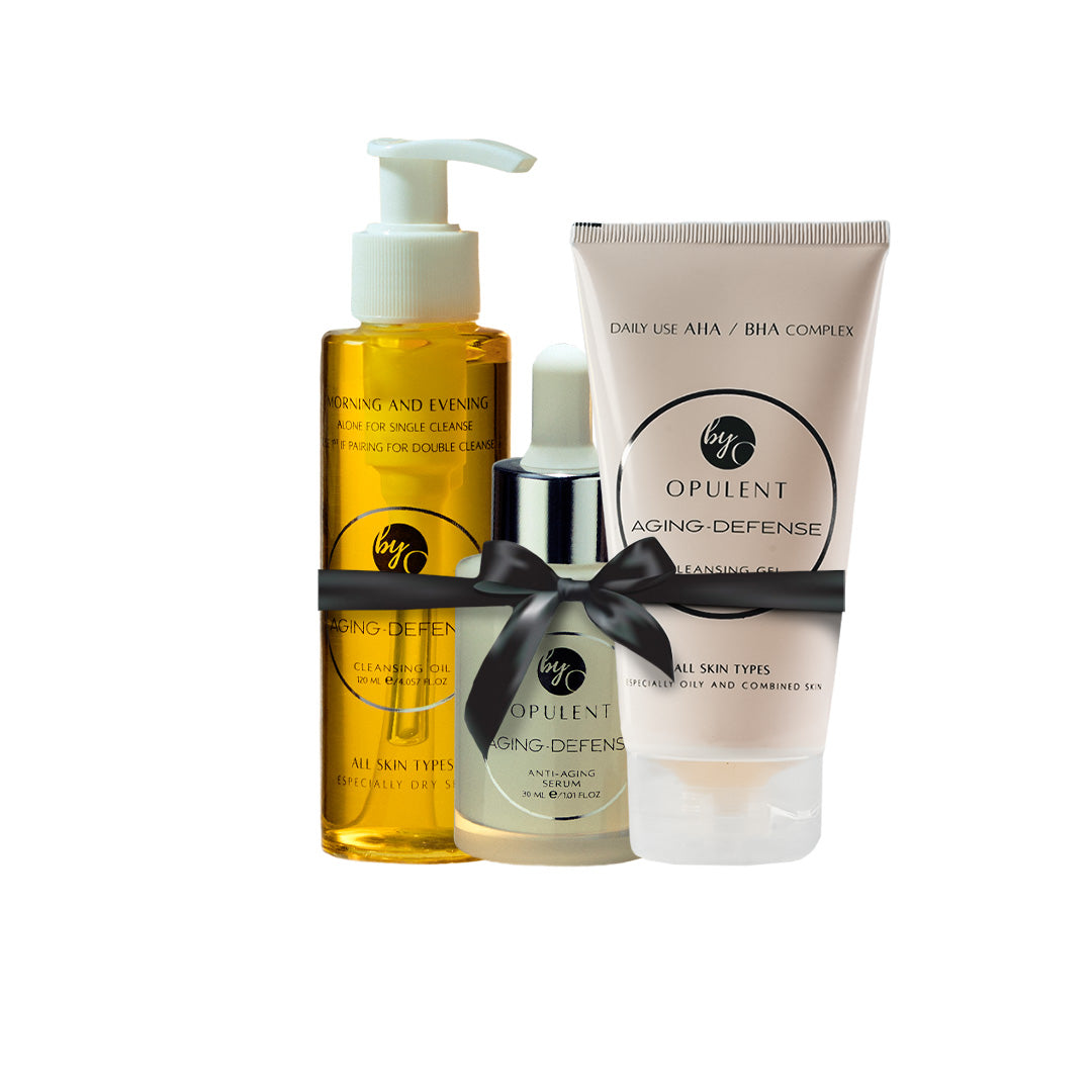 Aging defense Cleansing Gel features a unique exfoliating AHA/BHA complex for effective